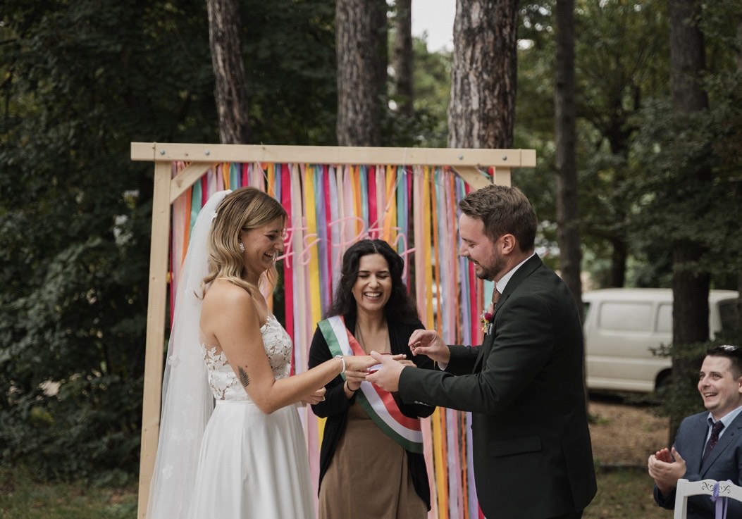 - hivatalos rész: igenek kimondása, csók, gyűrűhúzás, aláírás